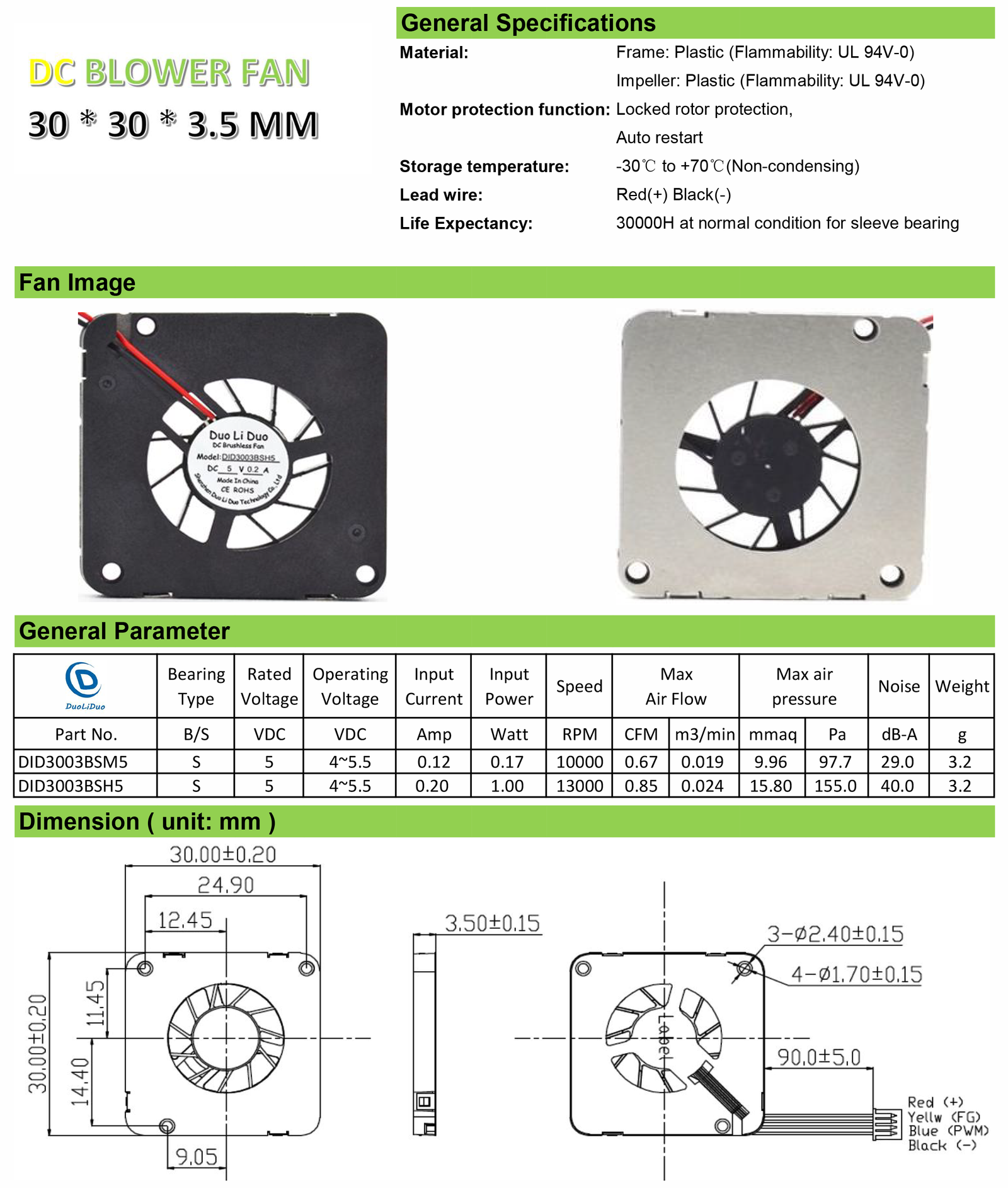 30mm 5v Cooling Fan 30x30x3.5mm Micro Fan 3003 3v Dc Ultrathin Blower